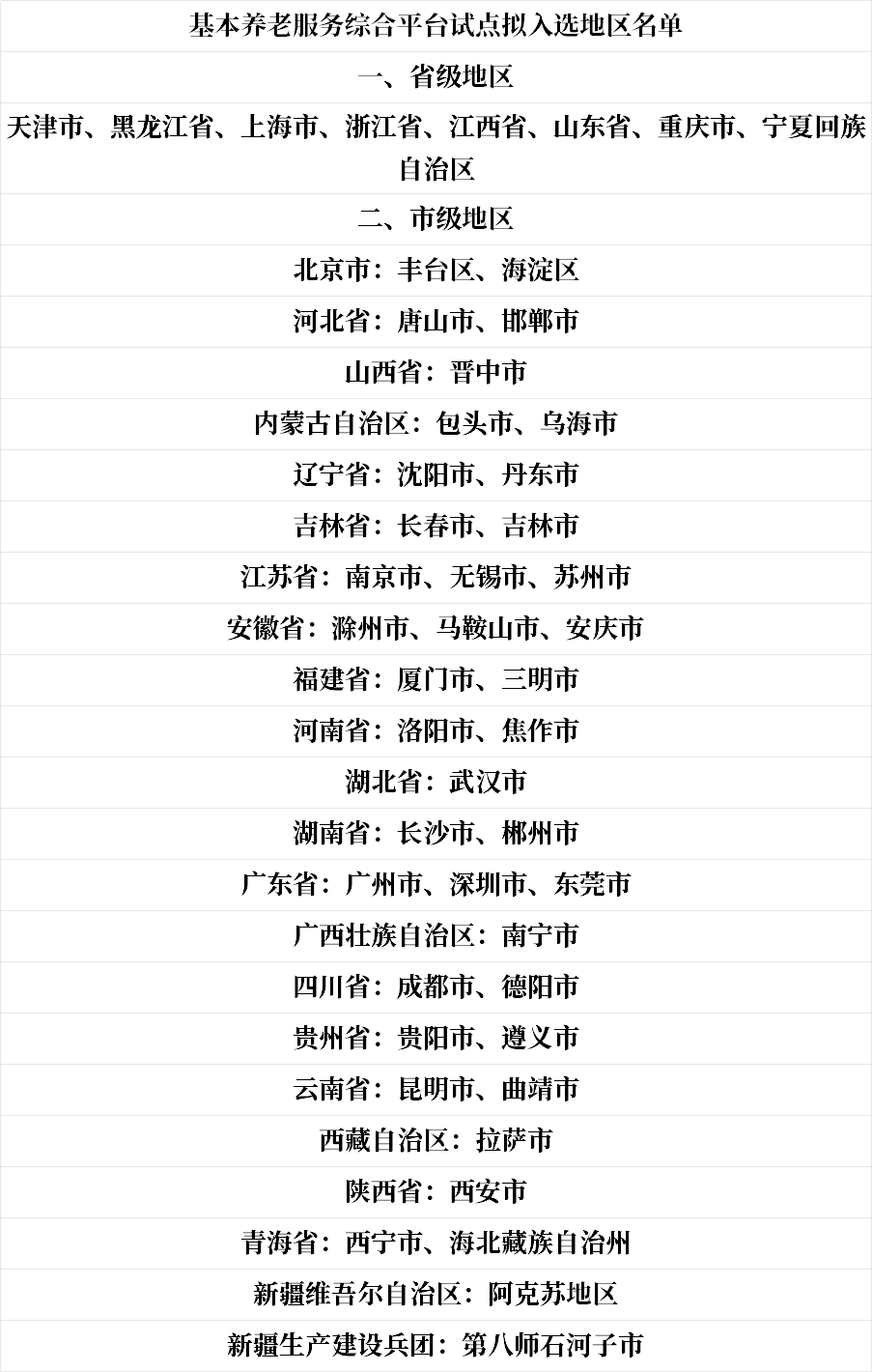 此外,4月25日,民政部办公厅与国家数据局综合司联合发布了《关于组织开展基本养老服务综合平台试点的通知》(民函〔2024〕5号),计划将天津市等48个地区作为基本养老服务综合平台的试点地区,其中广州市入选为市级试点地区。其他入选的市级地区还包括北京的丰台区和海淀区,河北省的唐山市和邯郸市,以及其他多个省市的代表性城市。