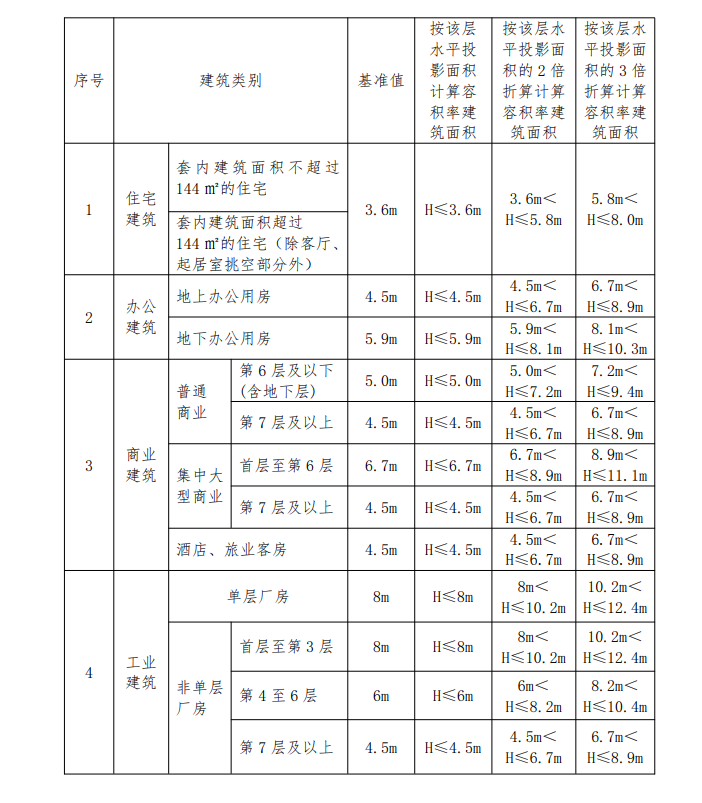 附:广州市各类建筑计算容积率建筑面积层高标准表